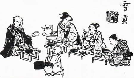 江戸時代に入ると、囲炉裏のない料理屋で、火鉢などを使った小鍋料理が発達。各人が箸で鍋から料理を直接つつくようになった。